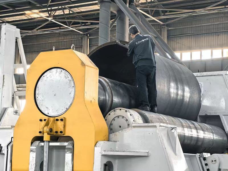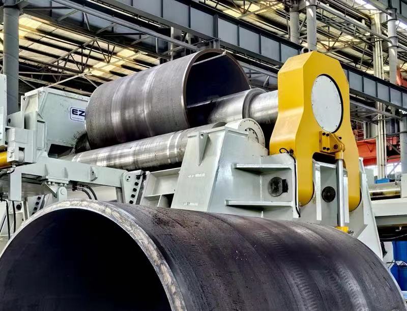 EZHONG為東歐機(jī)械公司設(shè)計(jì)制造的120*4000數(shù)控四輥卷板機(jī)在EZHONG工廠進(jìn)行了發(fā)貨前的測試